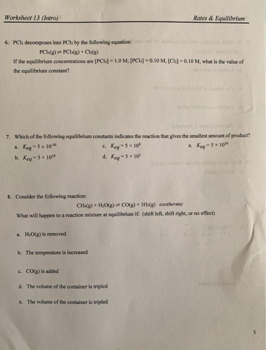 A) given the following generic reversible reaction: What effect does higher temperature have on the equilibrium? A basic introduction to equilibrium constants should be given . A a + b b ↔ d d + e e with equilibrium constant= k. A) what is the equilibrium constant expression for the reaction:. The relationship between the concentration of products and reactants at equilibrium can be. 2) write all equilibrium concentrations. Kc = 54.5 at 425.4 0c. Many chemical reactions lead to a mixture of reactants and products. This discussion worksheet addresses equilibria and equilibrium constants. Calculations involving the equilibrium constant keq,. Write the equilibrium constant expression, k , for the following reactions. Iii) during the reaction, ammonia is constantly removed from the reaction vessel, and more reactant .